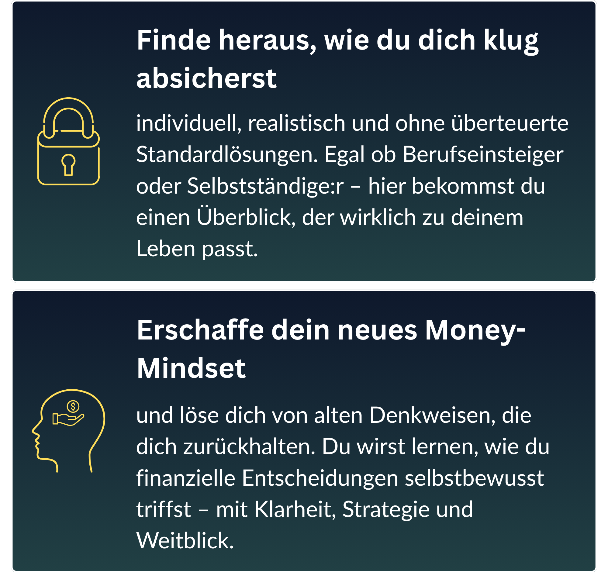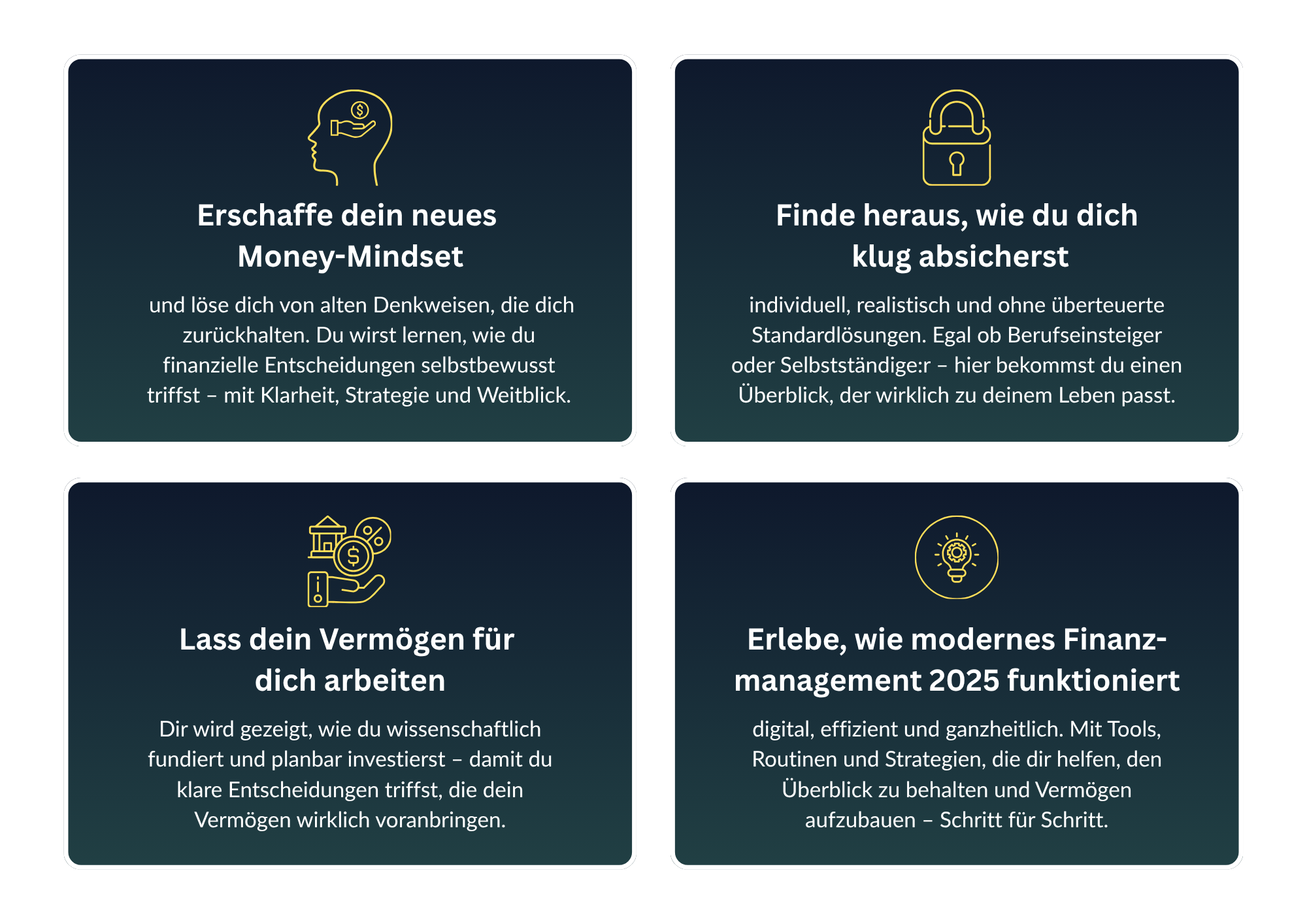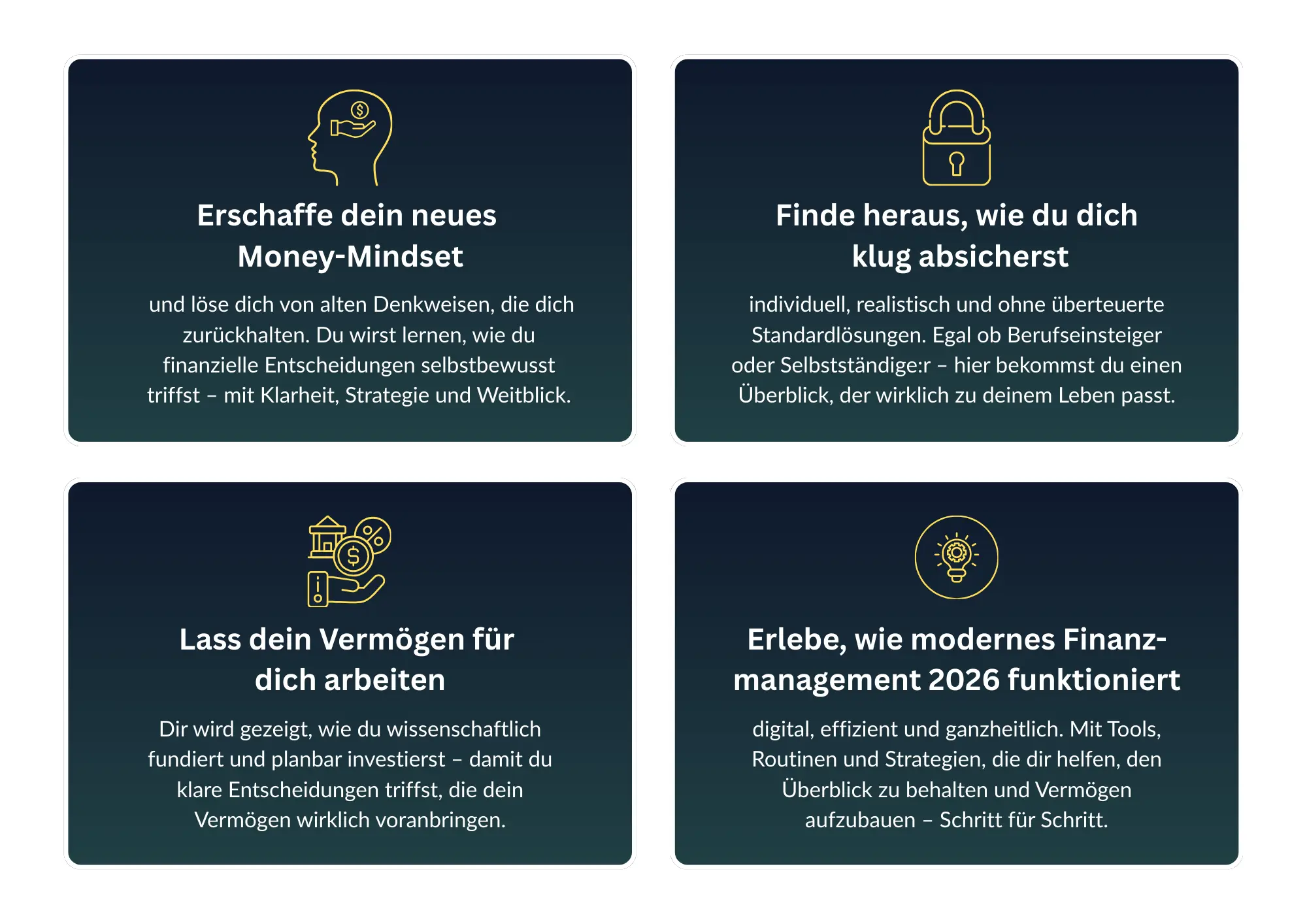 Du bekommst neue Perspektiven auf deine aktuelle finanzielle Situation. Es geht um finanzielle Stärke und echte Weiterentwicklung ohne Druck.